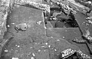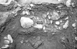 Un sondage a révélé des niveaux d’occupation à une profondeur de 4,10 m : un mur de gros blocs de pierres a été mis au jour, et identifié à un segment du rempart de la ville classique (Ve s. ; fig. 3). Aucune phase plus ancienne n’a été observée dans ce secteur. Parmi le mobilier, on signale, outre la céramique commune et la céramique peinte, des coquillages, ainsi que 126 petits objets dont trois monnaies et une épingle en bronze, des fragments de panses d’amphores inscrites et des pesons.