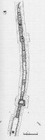 À Europos, Th. Savvopoulou (XVIe éphorie des antiquités préhistoriques et classiques) a mené en 2001 une fouille de sauvetage, dans le cadre de travaux de canalisation, qui a livré les vestiges d’une structure d’adduction d’eau maçonnée et voûtée (long. 57,50 m ; larg. 1,20 m ; haut. 0,80 m ; fig. 1). Cette structure, équipée de puits d’accès de plan carré dont l’orifice était obturé par des pierres et de la terre, était enduite sur l’extérieur d’une épaisse couche de mortier. Sa datation n’a pas été déterminée.