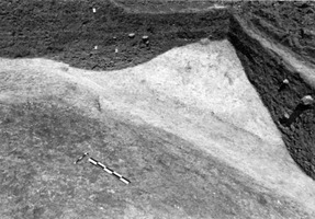 Près de la commune moderne de Liti, K. Tzanavari et K. Philis (XVIe éphorie des antiquités préhistoriques et classiques) ont poursuivi en 2003 la fouille de l’habitat néolithique dit « Liti I ». La fouille de sauvetage du terrain Nika a livré un segment du fossé-péribole, orienté Est-Ouest (long. 5,80 m ; fig. 1). Ses parois inclinées forment un V ouvert, sur une profondeur d’1 m : la largeur du fossé était de 4 m en surface, de 0,70 à 0,85 m au fond. La fouille du comblement du fossé a révélé plusieurs couches : une couche de remblai d’une épaisseur de 0,60 à 1 m qui contenait de la céramique du Néolithique Moyen, ainsi que des fragments de meules ; une couche principale, argileuse et de couleur jaunâtre (ép. 0,60-0,80 m), qui comportait de la céramique du Néolithique Moyen, des éclats de silex et de quartz, des haches en pierre, des outils en os, quelques projectiles.