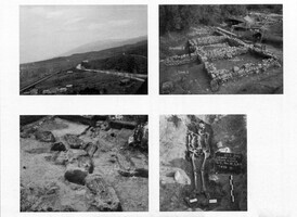 Les vestiges des phases classique-hellénistique et romaine comptent deux voies revêtues de gravier, une ferme et une partie d’une nécropole de l’époque impériale qui ont livré de la céramique commune et à vernis rouge du Ier au IVe s. apr. J.-C. (fig. 1), des vases en verre, des pesons et des figurines en terre cuite, des outils métalliques, deux cloches en bronze, une cuiller en os. À un niveau inférieur, on a dégagé des murs appartenant à des constructions de l’époque classique et hellénistique ainsi qu’une fosse-dépotoir comportant une grande quantité de céramique et d’éléments architecturaux.