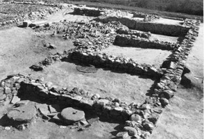En 2004 et 2005, de nouvelles fouilles d’urgence ont été conduites aux abords de ce village situé près du fleuve Nestos et de la frontière gréco-bulgare. Des sondages au lieu-dit Kavakia, au sommet d’une colline située à l’Est du village, ont notamment mis au jour une ferme d’époques romaine et paléochrétienne. Le complexe, partiellement exploré, se compose de plusieurs espaces organisés autour d’une grande cour intérieure. L’aile Nord-Est devait être l’espace principal de réception et de résidence des occupants de la ferme (grandes pièces de construction soignée, blocs de marbre). L’aile Sud-Est était sans doute destinée aux travaux agricoles : on y a reconnu des lieux de stockage (pièces avec plusieurs pithoi in situ) et des installations artisanales renfermant deux fours piriformes et plusieurs meules (fig. 1). Le mobilier recueilli comprend de la céramique domestique, des pesons de métier en terre cuite, de nombreux objets métalliques et des monnaies datant des deux périodes d’occupation du complexe (IIIe-IVe et Ve-VIe s. apr. J.-C.). La présence d’éléments architecturaux en marbre d’époque paléochrétienne (bases de colonne, imposte de chapiteau orné d’une croix) suggère qu’à cette époque un édifice monumental, peut-être une basilique, réutilisa les espaces annexes de la ferme romaine. À partir de la seconde moitié du VIe s. le complexe tomba dans l’abandon.