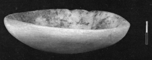 Parmi le mobilier associé, on note un grand nombre de vases de stockage et de cuisine (vases tripodes), dont plusieurs à décor peint ou incisé, un vase en marbre (fig. 2), plusieurs vases miniature, quelques figurines et de nombreuses pièces d’outillage lithique (silex), pour la plupart taillées.