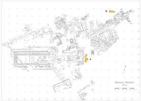 Sur l’île de Samos, W. D. Niemeier (DAI) et O. Kouka (Université de Chypre) rendent compte de la poursuite, en 2013, des recherches menées sur le site de l’Héraion dans deux secteurs : à l’Est du grand autel dit « de Rhoikos », et dans le secteur Nord-Est, au Nord de la Voie Sacrée (fig. 1).