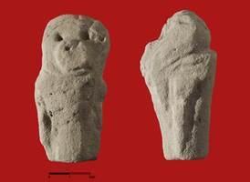 La fouille à l’Est de l’autel de Rhoikos, commencée en 2009, s’est terminée en 2013 avec le dégagement des couches de déblais des autels plus anciens. Les couches sédimentaires stériles correspondant aux crues de l’Imbrasos ont été atteintes. De nombreuses offrandes ont été trouvées : des figurines en terre cuite indigènes de la seconde moitié du VIIIe s. av. J.-C. et du VIIe s. av. J.-C., une représentation grossière d’un singe en calcaire (fig. 2), une figurine masculine en terre cuite provenant de Milet, une statuette féminine en calcaire provenant de Chypre (seconde moitié du VIIe s. av. J.-C.), une tête de lion en feuille de bronze (fig. 3), une statuette féminine égyptienne (712-664 av. J.-C. ; fig. 4), une figurine oushebti en faïence appartenant à la 25e dynastie (fig. 5), des figurines égyptiennes de lions en bronze, etc.