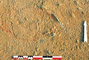 À l’intérieur du bâtiment, on a dégagé une couche de pierres plates qui pourrait correspondre au revêtement du mur ou à l’effondrement d’un toit plat. Dans la partie centrale, au-dessus du rocher naturel, on a trouvé des concentrations de charbons de bois et des coquillages dans une couche de sédiments noirs (cf. la même couche de terre brûlée qui contient une concentration de murex, signalée en 2012, Chronique, n. 2984). Très peu de céramique a été recueillie sur le niveau d’occupation à l’intérieur du bâtiment, ce qui rend sa datation difficile. Des fragments d’amphores de l’époque classique ont été trouvés dans une couche perturbée à l’Est du bâtiment.