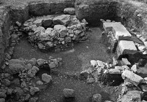 Kalligoni, anc. Leukas (property of M. Phourou). M. Stavropoulou-Gatsi and V. Staïkou (ΛΣτ’ ΕΠΚΑ) report the discovery of part of a house during excavation for a storeroom within the archaeological site of Leukas. A courtyard contained a built well (internal diameter 0.7m) and a probable cistern (which increased in diameter from top to bottom), as well as a built water channel (3.45m long). One room contained a large concentration of conical and pyramidal loomweights suggesting textile production. Two pieces of andesite millstones also indicate agricultural production.
