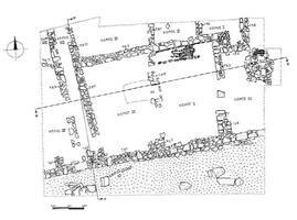 Kalligoni, anc. Leukas (property of G. Chalikia). M. Stavropoulou-Gatsi and V. Staïkou (ΛΣτ’ ΕΠΚΑ) report the discovery of part of a Late Classical building complex within the ancient city near to the northern branch of the city fortification. This complex also had at least one later phase of construction. Nine rooms were exposed, with walls of worked and unworked limestone blocks. A burnt layer in room IV contained 92 intact miniature vessels plus sherds of many more, likely from a foundation deposit. Room V contained a terracotta structure which is probably a shallow cistern, and room VI a stone well. The northeast section of one particularly long wall (1) was built of roughly worked hard limestone blocks in the polygonal style: alongside it, outside the building, was a road (1-3.7m wide) running from northeast to southwest, which consisted of a solid 0.8m-thick layer of yellow-brown earth, gravel, ground-up tile, sherds and sea shells. All the rooms in the complex contained dense destruction levels with large quantities of pottery (mostly storage and cooking vessels, as transport and storage amphorae, chytres and strainers). Finewares with painted, impressed, relief and incised decoration were also find, as well as loomweights, lamps, figurines and small metal items (needles, hooks, rings, knives, door furniture etc.)