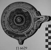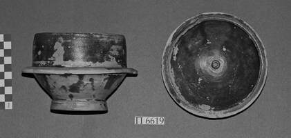 West of the church, on the property of P. Petropoulou, two third- to second-century BC cist tombs were found during the opening of a drainage ditch. Tomb I (1.75 x 0.4m), of limestone slabs, contained one extended inhumation and three displaced burials pushed to the ends of the grave. A one-handled cup and a lachrymaterion were placed on the pelvis, while at the feet were a bone astragalos, fragments of an iron strigil and knife, and two lachrymateria. At the south end of the grave, beneath two of the displaced crania, were two bronze mirrors, fragments of a bronze knife, a lachrymaterion, and two lamps. Following the removal of these burial remains, came two pyxides, two amphoriskoi, a plate, a black glaze feeding bottle with lid, and a miniature pyxis. A limestone pedimental grave stele was set over the tomb. Cleaning outside the tomb produced an iron knife, a bronze mirror handle and a pyxis lid.