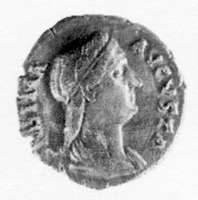 La partie Sud-Ouest du champ a également fourni trois fosses à détritus de l’époque romaine et protobyzantine, ainsi que des fondations, en appareil de pierres brutes, en mauvais état de conservation (fig. 4) ; cette dernière paraît antérieure à un niveau de destruction qui a livré une monnaie en argent de l’impératrice Sabine, épouse d’Hadrien.