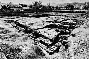 Further peribolos walls in the west of the plot defined a large rectangular area including the altar. Small rooms/defined areas on the west side remain to be fully investigated. These produced chiefly fifth-century pottery plus some earlier sherds.
