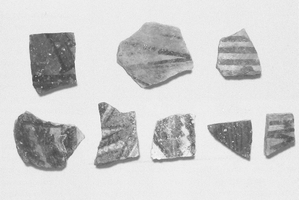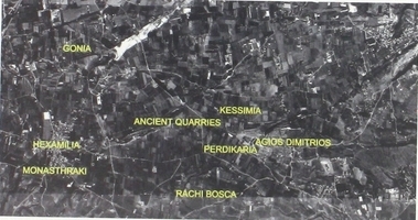 Rachi Boska: in addition to known Neolithic and Bronze Age occupation (when large quantities of Melian obsidian and high quality pottery of both periods, e.g. Bronze Age Cycladic and Aeginetan imports, attest to wide connections), Protogeometric and Early Geometric pottery confirms that activity continued through the tenth and ninth centuries, contemporary with the cist grave cemetery discovered (below Classical graves) at Perdikaria just to the north (see ID2496, 3799). The only grave offering found here was a pair of bronze spirals. It is likely that the focus of settlement through this period was the north slope of Rachi Boska, which had at least one good water source and commanded routes from Kenchreai to ancient Corinth and the surrounding plains. From the Middle Geometric period onward, the focus moves north to Kesimia, where a cemetery of stone sarcophagi has been found – this should be considered alongside the neighbouring Perdikaria cemetery. Fine ninth- and eighth-century pottery (similar to that e.g. from Ancient Corinth) has been revealed in illegal excavation in the cemetery: a rectangular hearth/altar of the same period, found on a rocky height close to the cemetery, probably belongs to an early sanctuary. The new settlement focus is closer to the major Hexamilia quarry complex, then exploited at least for sarcophagi, and to the sanctuary of Poseidon at Isthmia. Evidence for eighth- and early seventh-century activity in the area remains minimal, but from the mid seventh century onwards activity reached a peak. Notable quantities of offerings (pottery and figurines) are reported at shrines on the peak of Boska and in the vicinity of the Geometric cemeteries at Perdikaria and Kesimia. Significant remains of houses, tombs, wells, shrines, irrigation and production facilities have been found in an area defined to the north by the road from Isthmia to ancient Corinth, to the south by the Rachi Boska, to the east by the hill of Agios Dimitrios, and to the west by the long quarry trench. However, graves of the period 650-400 BC were found beyond this area in all directions, chiefly along road lines, and the late Archaic-early Classical cemetery excavated at Perdikaria in 2004-2005 should also be noted (see ID 2496, 3799). Major routes in the Corinthian road network cut through Kesimia, linking the Hexamilia quarries (to which Kromna likely owed its prosperity) to major centres and ports. From the end of the fifth century onwards remains are notably fewer (materials from earlier buildings were re-used in the Hellenistic trans-Isthmian wall), but dedication on Rachi Boska continued through the fourth and third centuries BC and the quarries continued in use.