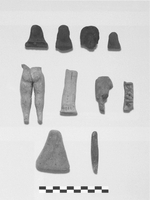 Autel - Église - Figurine - Four - Édifice religieux - Nécropole - Production/extraction - Sanctuaire - Voierie - Mobilier et aménagement du bâti - Bâti - Espaces