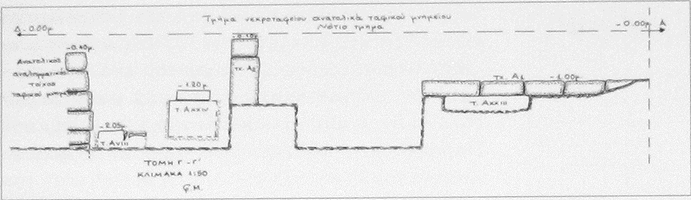 Thirty-three tombs were excavated (20 of which were simple cist containing single inhumations and dating to the second and first centuries BC), plus a displaced burial, an enchytrismos, and a pyre.
