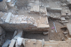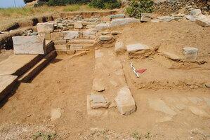 À Palaiopolis, L. Palaiokrassa-Kopitsa (Université d’Athènes) a poursuivi en 2013 la fouille systématique de l’agora de la cité antique d’Andros en deux secteurs : à l’Ouest du bâtiment à propylée (bâtiment D), sur la terrasse supérieure, et dans la pièce orthogonale du portique au Nord de la basilique, sur la terrasse inférieure.