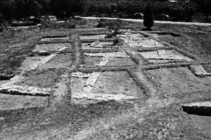 Dégagée sur une surface de 235 m2, la partie fouillée du bâtiment (fig. 1) comporte une dizaine d’espaces, dont le plus grand – au moins deux fois supérieur aux autres – était peut-être une cour. Au centre, trois des espaces auraient été pavés de tuiles de terre cuite (fig. 2). Au Nord, un autre espace, de plus petites dimensions et revêtu de mortier hydraulique, était sans doute un réservoir. Les autres trouvailles de la fouille comportent des fragments de broyeurs et de pithoi, des pesons et des noyaux d’olives, indiquant la fonction de cette installation.