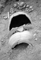 Lors des nettoyages de la basilique protobyzantine située à l’intérieur de la forteresse, on a découvert trois colonnes effondrées. Près de l’entrée du site, la fouille a dégagé des restes de crémation déposés dans des fosses et des enchytrismes dans des pithoi (fig. 1-2), ainsi que des amphores des époques archaïque et classique (VIe-IVe s. av. J.-C.).
