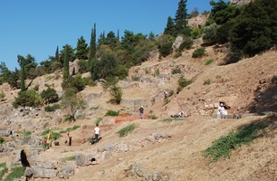 À Delphes, J.-M. Luce (Université de Toulouse) et N. Kyriakidis (Université Paris 8) ont poursuivi en 2014 le programme de recherche sur la ville de Delphes. La mission a comporté plusieurs volets : prospection, relevés topographiques, fouilles (fig. 1).