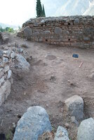 Fig. 10/ Delphes. - Secteur 5. Au premier plan, le péribole archaïque, à l’arrière-plan, le bâtiment protobyzantin
