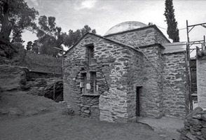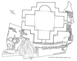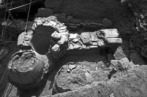 L’église avait été partiellement ensevelie par des sédiments provenant de la colline dans sa partie Nord et Ouest (fig. 1). Le dégagement de ces dépôts ont permis de mettre au jour les restes de deux citernes renforcées d’une épaisse couche de mortier hydraulique et de pièces de stockage comportant trois grands pithoi (fig. 3-4). Les tessons qui y ont été trouvés datent de l’époque tardobyzantine.