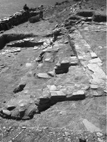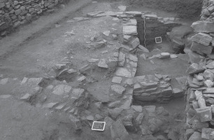 De ces bâtiments, un seul est préservé jusqu’à l’étage (dim. 8 m x 9 m). La fouille s’est poursuivie en profondeur sur l’un des autres bâtiments, partiellement conservé : elle a révélé que celui-ci était construit sur les ruines d’un édifice antérieur. La céramique recueillie à l’intérieur de ces bâtiments compte notamment des pithoi à décor en relief, des cruches, des vases de stockage et des outils en pierre (fig. 3).