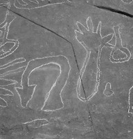 Les données de fouille suggèrent que la ville a subi plusieurs destructions à la suite de séismes, entre le début de l’époque protocycladique et le milieu de l’époque cycladique moyenne (2000-1900 av. J.-C.). En revanche, une couche de destruction, repérée entre deux bâtiments, comportait une quantité de céramique qui permet de situer la fondation de la ville à l’époque protocycladique IIIB. Cette datation est confirmée par la présence de graffitis sur la roche comparables à ceux repérés sur le site de l’habitat néolithique de Strophilas (fig. 4). Ces graffitis pourraient faire remonter la première occupation du site au Néolithique Final (3300 av. J.-C.), après l’abandon de Strophilas.