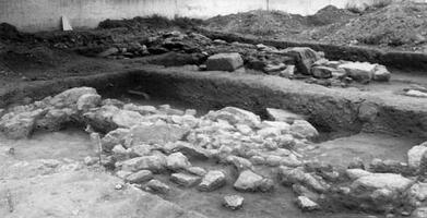 Voula, 149 Spetson Street (O.T. 147, property of B. Kassimati). Triantafyllia Kattoula (ΚΣΤ’ ΕΠΚΑ) reports the discovery of a further section of the road that ran across the deme of Halai Aixonidae and connected it to the adjacent demes.The road was 2.5m wide and ran west-east. Poorly preserved retaining walls were found on both sides (fig. 1), constructed in different techniques (the north wall built of small stones and large limestone boulders, and the south of medium-size stones). The small quantity of pottery retrieved included two fragments of a third-century AD lamp with herringbone decoration and two concentric cycles on the base. However, other excavated sections of this road attest to its long period of use from the fifth century BC until the Byzantine period.