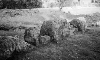 A limestone sarcophagus (2.2 x 1m) and two pyres (one ritual and the other funerary) were found in the area north of the enclosure. Although the sarcophagus had been looted, it contained bones, metal nails, a fragment of a gold-plated rosette and burned black-glazed pottery. The ritual pyre, which lay over the sarcophagus, contained miniature vessels, animal bones and few fragments of metal. The funerary pyre contained bones and an intact, undecorated vessel.