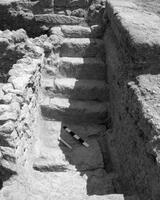 Ancient Sikyon, Vasiliko, football stadium (property of S. Thanopoulou). A.-M. Anagnostopoulou (ΛΖ’ ΕΠΚΑ) reports the discovery of a quarry with some 15 quarry pits ranging in depth from 0.15-2.06m. The area was subsequently used for settlement: at least six rooms were identified, defined by eight roughly made walls of fieldstones and worked blocks in secondary use. A flight of five rock-cut steps, a built rectangular cistern subsequently used for refuse, a further rock-cut cistern lined with cement, a well, and a rock-cut channel were also found. Finds comprise plain domestic pottery, Hellenistic and Roman black glaze pottery, 11 bronze coins, loomweights and terracotta lamps.