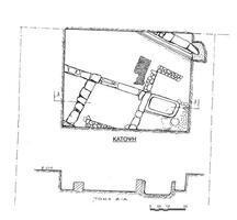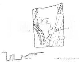 Fig. 2/ Ancient Sikyon, Vasiliko, football stadium, property of P. Tsoulpha, ground plan and section.