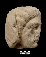 La tombe 801 (LM 2062) était pillée. On y a recueilli, entre autres, une tête féminine en calcaire, fragmentaire, portant un voile. Elle date de la période hellénistique (T. 801/1 ; haut. 20,5 cm ; fig. 1 et 2).