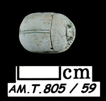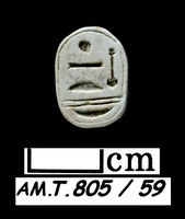 - un scarabée de faïence portant des signes égyptiens (T. 805/59 ; fig. 5 et 6) ;