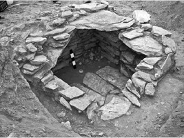 À Dimini, dans le secteur de l’habitat mycénien, St. Alexandrou (XIIIe éphorie des antiquités préhistoriques et classiques) a mené en 2005 une fouille de sauvetage sur le terrain Eu. Béï et mis au jour une tombe maçonnée de plan presque carré, avec couloir d’accès, datée de l’époque mycénienne (dim. 1,59 x 1,50 m ; haut. 1,50 m ; fig. 1).