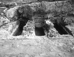 Kardamyli, Agia Sophia (property of G. Giannakea). X. Arapogianni (ΛΗ’ ΕΠΚΑ) reports the discovery near the chapel of Agioi Pantes, 700m east of the village of Agia Sophia, of three shaft graves oriented north-south and aligned in a row. Their maximum dimensions are length 2m, width 0.45m and depth 0.4m. They had been looted and contained only a few tile fragments, sherds, a piece of glass and two pieces of bone. While these finds are insufficient to date them accurately, the grave type is Hellenistic.
