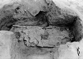 On a fouillé neuf tombes à fosse (fig. 1), dont les couvertures en tuf sont parfois conservées. Les autres tombes étaient des sarcophages, tous en mauvais état de conservation (fig. 2). Dans quelques tombes, on a recueilli du mobilier : deux lécythes aryballisques à figures rouges et plus de 65 jetons, des figurines de terre cuite, des bagues en fer et en bronze. On estime que l’ensemble de ces tombes datent du début du Ve s. à la fin du IVe s. et s’insèrent dans la nécropole classique implantée aux abords de la table Saralika.
