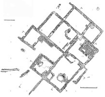 La stratigraphie indique quatre phases de construction assez rapprochées. Le bâtiment d’origine était constitué de cinq pièces, dont une seule n’était pas couverte. De nouvelles pièces, équipées de banquettes ou d’autres structures à caractère agricole, s’y sont ajoutées au cours des phases suivantes. Après une période d’abandon du bâtiment, une nouvelle phase d’occupation a vu l’installation d’une cheminée dans l’un des espaces ouverts au Sud du bâtiment.