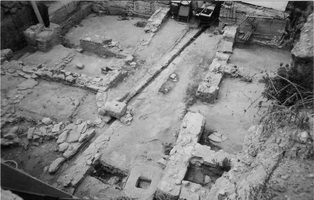Piraeus, 58 Mpotsari St. (property of I., G. and E. Galaiou). K. Axioti (ΚΣΤ’ ΕΠΚΑ) reports on the discovery of an early 3rd c. B.C. building with an irregular architectural plan which does not conform to the Hippodamian grid plan (Fig 1). The building consists of two rows of adjoining room and a hallway which run alongside its west part. Two of these rooms form the façade of the building. The smaller of these is interpreted as a workshop, since it accommodated three tubs and a drain. Only traces of the floors of the rooms survive.