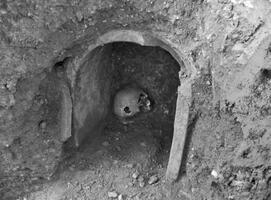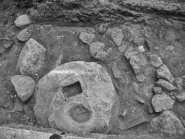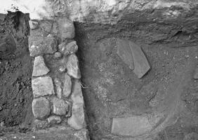 Athens, Vrilissia, Thrakis and Analepseos Streets (O.T. 186 and 187). Th. Tzaferi (B’ ΕΠΚΑ) reports on the discoveries of Roman architectural remains and a Roman burial. The area belonged to the ancient deme of Phlya. 5 walls were found (Fig 2) and a large circular boulder which could have been used as a threshold (Fig 1). The remains are identified as an agricultural facility. The burial was a tile grave with no burial offerings (Fig 3).