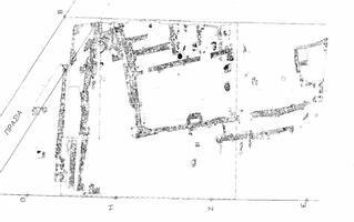 Finally a pi-shaped structure was found. It could have been a deposit, since numerous pottery sherds were found in it (pointed amphorae, handles with stamps, sherds with comb decoration and an unguentarium with traces of black paint).