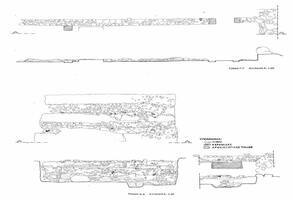 A structure for the containment of water was found near the farmstead. It consisted of two, parallel retaining walls. Few finds were excavated from between the walls, while numerous destruction layers were found outside of these. The destruction layers contained sherds from plain ware, basins, pointed amphorae, table ware and cooking pots.