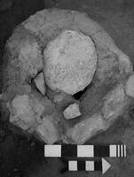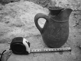 Gerakas, Stavros, Aghiou Ioanni Theologou and Patriarchou Gregoriou E’ Streets (O.T. 92, property of A. Tarasi). D.N. Christodoulou (Β’ ΕΠΚΑ) reports on the discovery of a Middle Byzantine building complex (Fig 1), which is contemporary with the nearby 11th c. church of Aghios Ioannis Theologos. Three rooms and a courtyard were excavated. One of the rooms contained two silos and a pit. One of the two silos was sealed with a slab. Another room contained a well lined with hydraulic concrete and a pit filled with large stones. The courtyard lies in the middle of the property. A silo sealed with a slab (Fig 2) and a coin were found there. Two walls were excavated from the south side of the courtyard. An intact trefoil-mouthed oinochoe (Fig 3), two iron nails and a bronze ring were found in the vicinity of one of the walls. Finally, another silo was found at a small distance from the courtyard. Numerous 9th-12th c. sherds were retrieved. Some of these are green-glazed.