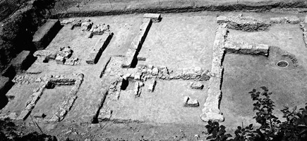On a mis au jour, sur toute l’étendue du terrain, des pièces orthogonales, de construction simple et d’orientation variable (fig. 1). La céramique qui y a été recueillie permet de les dater de la fin de l’époque hellénistique (IIe-Ier s. av. J.-C.). Sur tout le terrain fouillé, on a recueilli un grand nombre de figurines de terre cuite. Une grande concentration de figurines provient d’une fosse-dépotoir dégagée sous le niveau des bâtiments. Ces objets votifs sont liés au culte de Déméter et datent du IIIe s. av. J.-C.