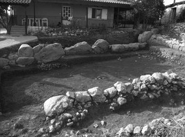 Dans la partie occidentale du terrain, on a dégagé un mur perpendiculaire, orienté Est-Ouest (long. 6,70 m ; larg. 1 m ; haut. 1 m) construit en appareil polygonal. Il était détruit dans sa partie Sud-Ouest, par l’aménagement d’une sépulture à l’époque hellénistique, à l’endroit où il rejoignait un troisième mur également construit en appareil polygonal (long. 5 m ; larg. 0,80-0,90 m). Dans la moitié Nord de l’espace compris entre ces trois murs (probablement une tour ou un bastion, également de l’époque classique), on a identifié un remplissage de pierres disposé en plusieurs couches. A un niveau inférieur, on a recueilli de la céramique préhistorique.