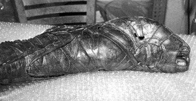 La jambe gauche d’une statue équestre en bronze d’époque romaine a été déposée à la capitainerie du port de Kalymnos. La jambe droite de cette même statue avait été déposée au Service archéologique en 1997.