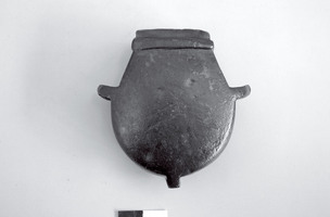 - le champ 127 n’a pas livré de vestiges ; le matériel recueilli comporte de la céramique sub-géométrique (kylikès), à figures noires, à vernis noir ou rouge, quatre monnaies en bronze, un récipient en bronze pour la graisse à armes (medoulari, fig. 1).