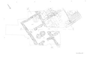 - au Sud-Ouest une pièce avec une structure circulaire interprétée comme une base pour un mécanisme pour presser le fruit. Tout près de cette structure, un mécanisme de filtrage, composé de vases liés entre eux et penchés vers le sol pour permettre le stockage du liquide dans d’autres vases.
