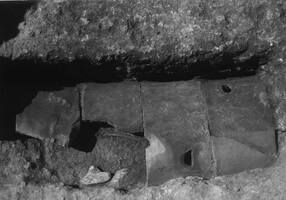 Nea Erythraia, Ethnikis Antistaseos, Ap. Orfanidi 3 (O.T. 316, property of Kydoniatis-Dimopoulos Co.). Dimitrios Palaiologos (B’ ΕΠΚΑ) reports on the discovery of a pit grave. It was rock cut and tiles from a well had been used to cover it (Fig. 1). The skeleton was in supine position and a Hellenistic, bronze coin was found between the skull and thorax of the dead. Three pits with drains leading to them were also found. The latter could be related to farming or workshop activities. They are nevertheless undatable. The excavation was conducted by N. Mpratsi under the supervision of the author of this report.