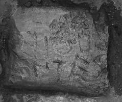 The remaining walls were built with stone blocks and belonged to another building (Fig. 4). In one of them an Archaic, boustrophedon inscription had been used as building material (Fig. 5). The following survives from the first line of the inscription: ΕΗ[.]ΙΕ , and ΝΤΕΣ survives from the second. Stone waste chips, tiles, and few black-glazed and undecorated pottery sherds were found in the area of these walls.