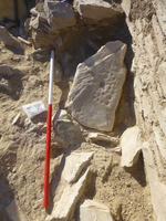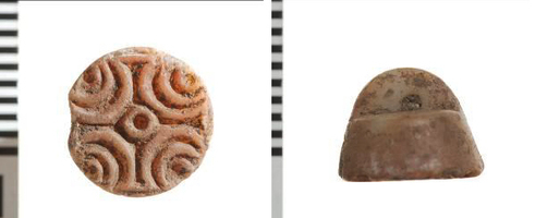 On Dhaskalio the structures investigated during the 2016 season could be assigned mainly to Phase B of the site sequence: this was clear in the large open-area excavation in Trench A, where several rooms and surfaces, as well as terrace walls, of that phase were revealed. A notable find was a small sealstone (Fig. 3), the first to be found on Dhaskalio; none has been found on Kavos. The structures of Trench F, immediately south of Trench VII of the 2007-2008 excavations, were securely dated by the accompanying pottery to Phase C. An interesting find here was a petroglyph (Fig. 4) apparently the first such to be discovered in a secure EBA context in the Cyclades There are also indications of Phase C material in Trench C at the northeast of the site.