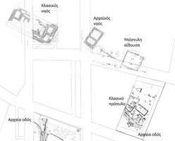 Fig. 12/ Gerakas, Stavros, Zaloggou and 25th Martiou, the ancient road. Its north side was disturbed by the Classical propylon.