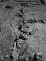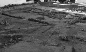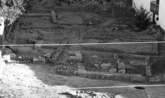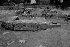 Fig. 8/ Gerakas, Stavros, Zaloggou and 25th Martiou, a wall of the Archaic building. The poros boulder in the middle belongs to the Classical propylon constructed on top of the building.